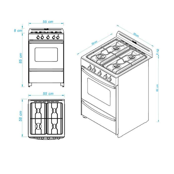 • 4 hornallas bien distribuidas: 1 rápida para hervor y sellado + 3 semirrápidas para preparaciones diarias.