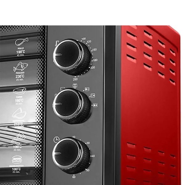 - Selector de funciones para elegir dónde calentar (arriba, abajo o ambos).