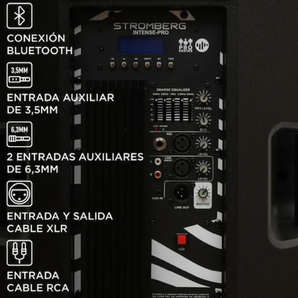 - Conectividad completa → Bluetooth, AUX, MIC y XLR IN/OUT.