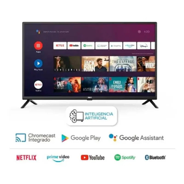 Compacto, práctico y con todas tus apps favoritas. El RCA 32″ Smart HD ofrece resolución HD (1366×768) en un tamaño ideal para dormitorio, cocina o espacios chicos. Con Android TV disfrutás una interfaz ágil con perfiles y recomendaciones, acceso a miles de aplicaciones desde Google Play y Chromecast integrado para enviar contenido desde el celular en segundos. Su diseño de marcos finos y la conectividad completa lo convierten en una opción confiable para ver series, deportes y YouTube sin complicaciones.